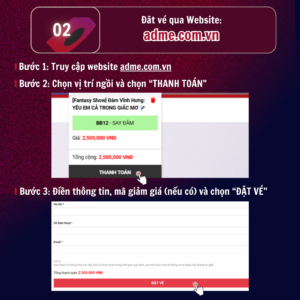 Đêm nhạc Fantasy Show với chủ đề “Yêu Em Cả Trong Giấc Mơ” hứa hẹn sẽ mang đến cho khán giả một không gian âm nhạc sang trọng, đầy cảm xúc cùng những màn trình diễn đặc biệt từ Đàm Vĩnh Hưng và các khách mời. Để quý khán giả dễ dàng sở hữu tấm vé tham dự, Ban Tổ Chức xin gửi đến hướng dẫn chi tiết: